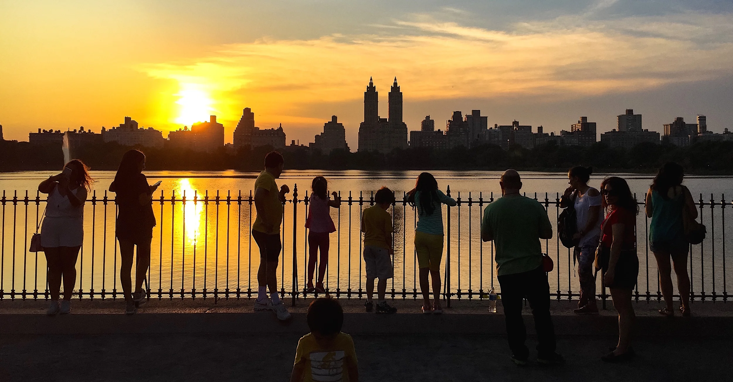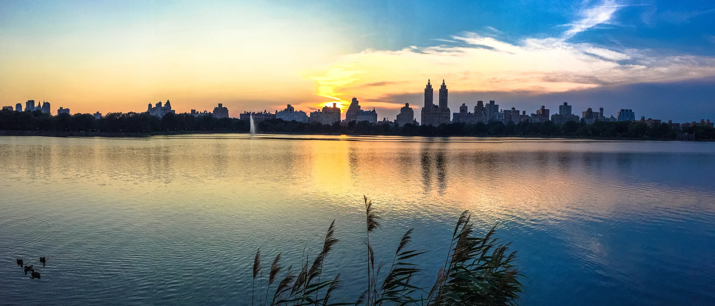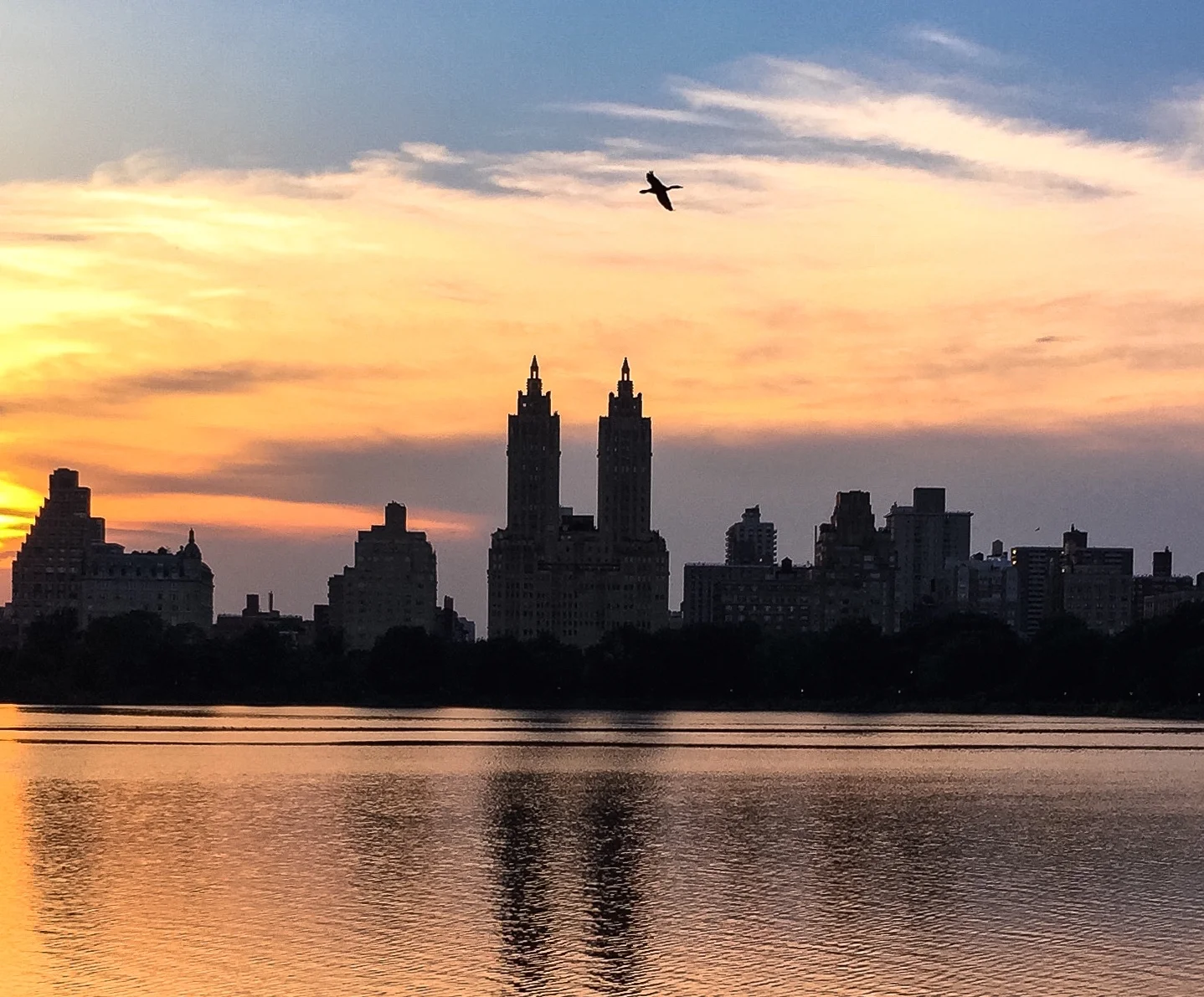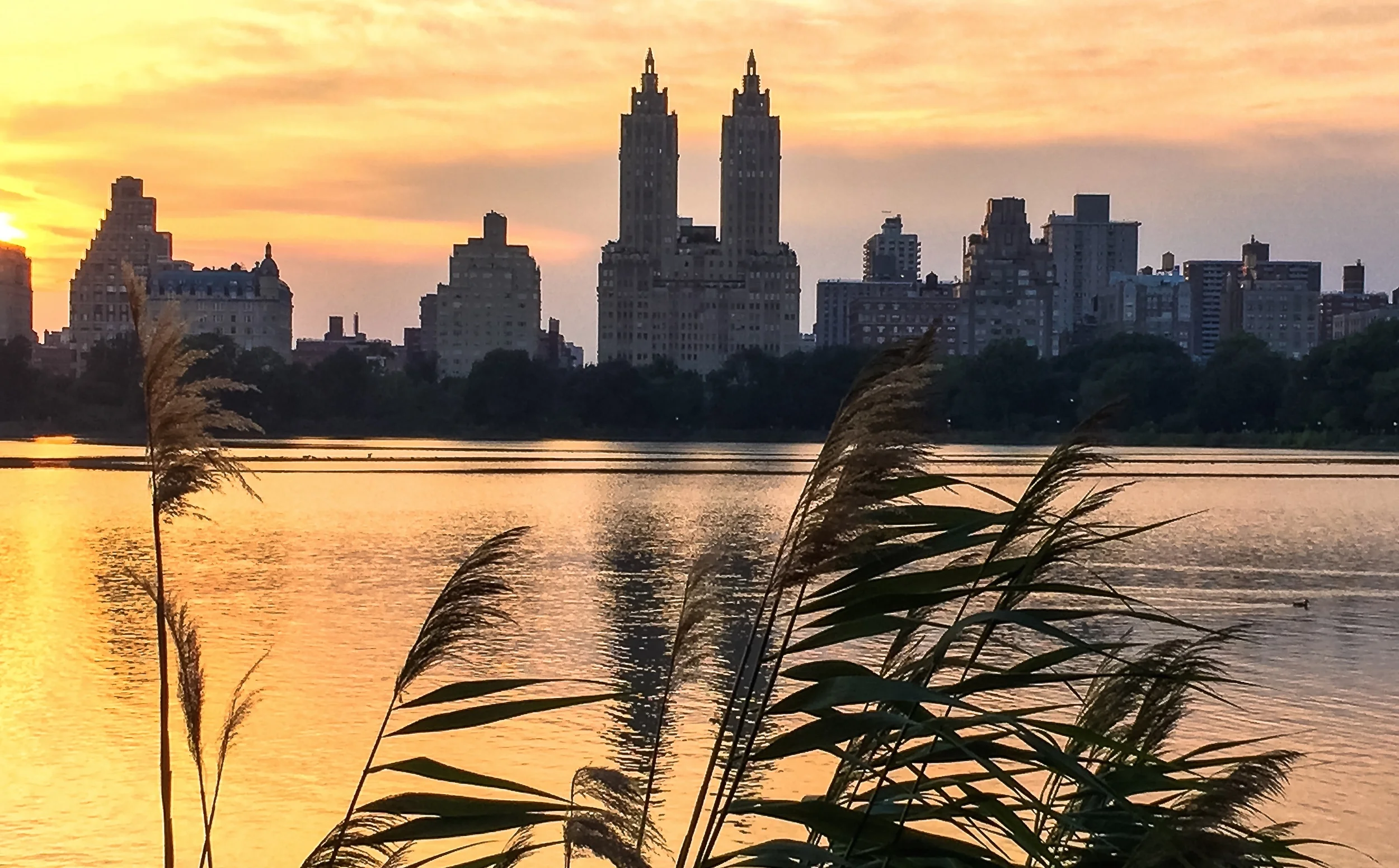 The locale looks out onto the expansive reservoir, and at by hour the August sun had dipped near the horizon. It cast its fiery but dying golden reserves on the apartment buildings that line Central Park West, with the twin towers of the Eldorado commanding front-and-center attention across the serene water.